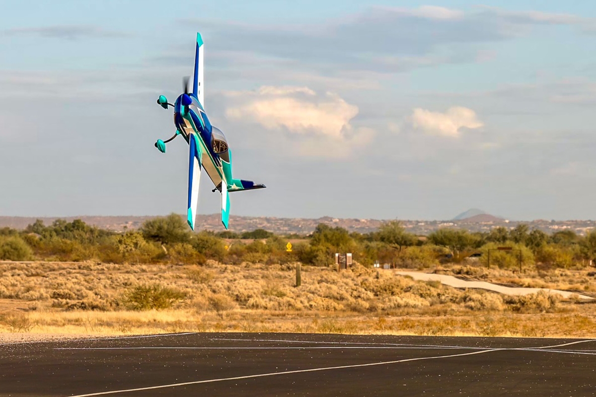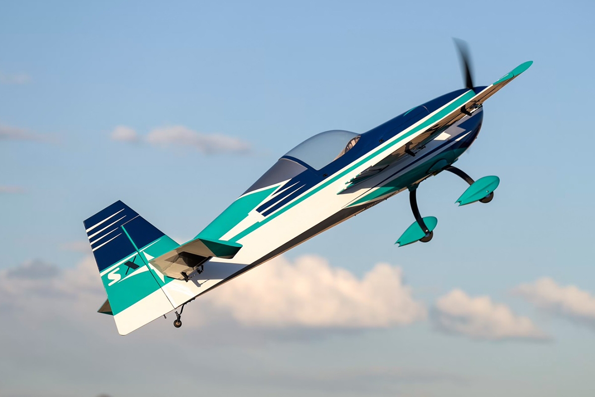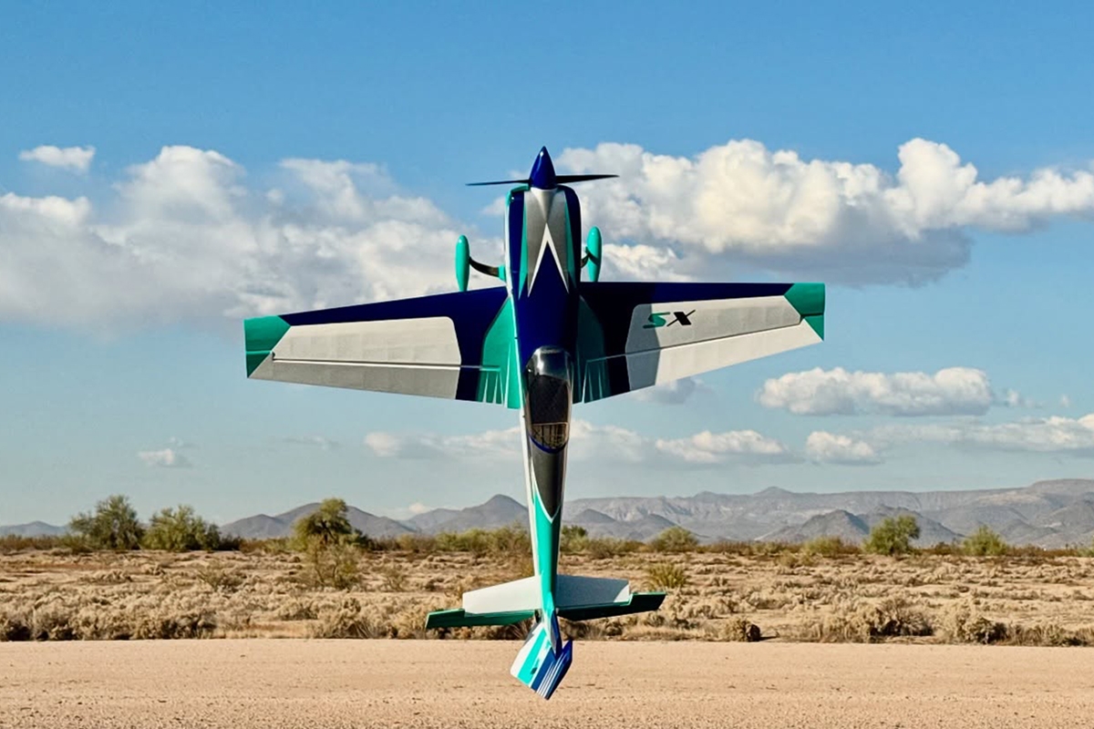 Sportovní polomaketa akrobatického letadla pro pohon benzínovým motorem 100-130 ccm pro zkušené piloty pro létání klasické přesné i extrémní 3D akrobacie.