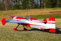 Sportovní polomaketa německého akrobatického letadla pro pohon benzínovým motorem 85-130 ccm pro zkušené piloty pro létání klasické přesné i extrémní 3D akrobacie.