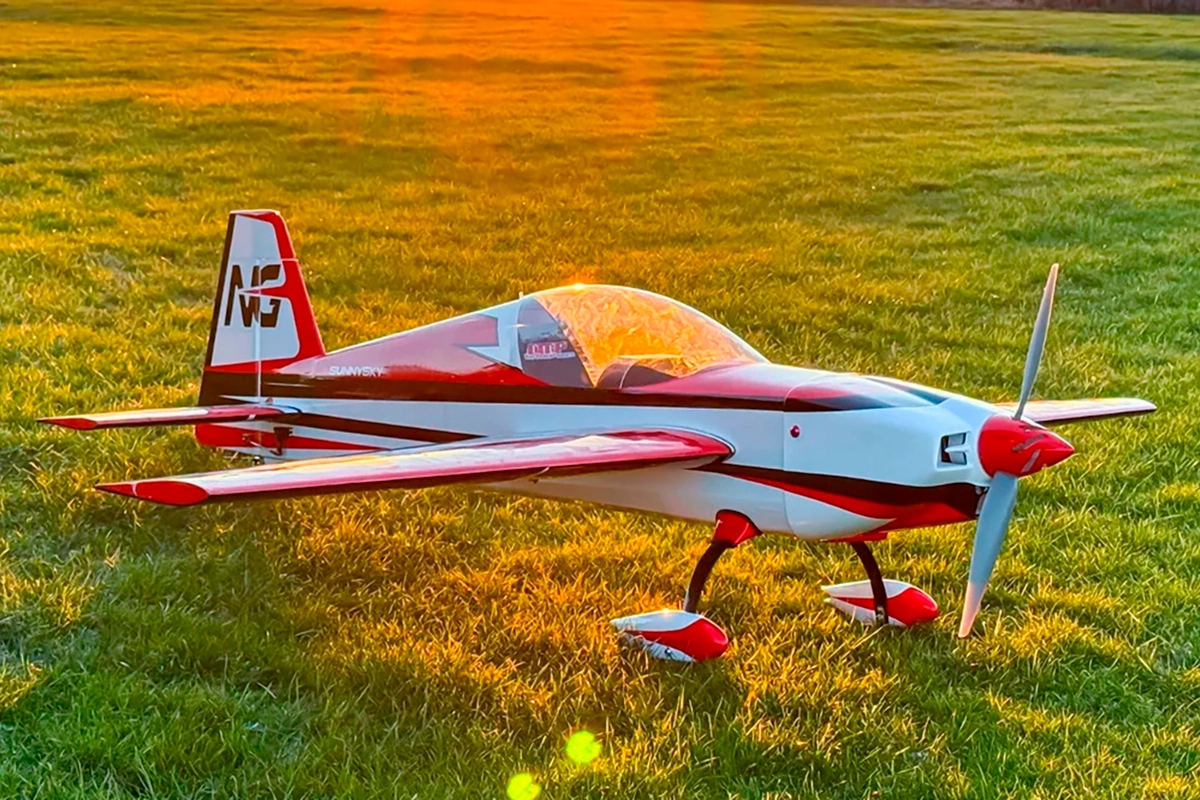 Sportovní polomaketa akrobatického letadla pro pohon benzínovým motorem 100-130 ccm pro zkušené piloty pro létání klasické přesné i extrémní 3D akrobacie.