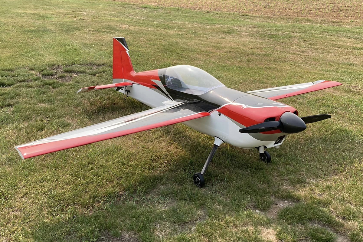 Sportovní polomaketa akrobatického letadla pro pohon benzínovým motorem 100-130 ccm pro zkušené piloty pro létání klasické přesné i extrémní 3D akrobacie.Trup modelu je klasické konstrukce z překližkových a balsových laserem vyřezávaných dílů vyztužených Kevlarem® a uhlíkem s odnímatelným laminátovým motorovým krytem a odnímatelnou horní částí trupu s kabinou pro dokonalý přístup k pohonnému systému a RC vybavení. Motor se upevňuje v zadní montáži na překližkové krabicové lože; pro případnou montáž laděného tlumiče výfuku je připraven tunel na spodní straně trupu.Dvoudílné křídlo se souměrným profilem (poloviny se nasouvají z boku na uhlíkovou trubkovou spojku a zajišťují šrouby) je rovněž klasické konstrukce s celobalsovým tuhým potahem. Křidélka s velkou plochou jsou ovládána 2 páry serv.Ocasní plochy jsou lehké celobalsové konstrukce, VOP je dvoudílná spolovinami stabilizátoru nasouvanými na uhlíkovou trubku. Poloviny výškovky jsou ovládány servy uloženými ve vodorovném stabilizátoru s krátkými přímými táhly. Směrovka je ovládána pomocí lankového náhonu. Celý model je potažen nažehlovací fólií ULTRACOTE® (to je obchodní značka používaná v USA pro dobře známé fólie Oracover®).Podvozek je ostruhového typu s uhlíkovými hlavními nohami, koly s laminátovými kryty a drátovou ostruhou s uhlíkovou konzolí spřaženou se směrovkou.Pro pohon budete potřebovat benzínový motor 100-130 ccm (např. GP-123).Pro ovládání modelu vyhoví nejméně devítikanálová počítačová RC souprava – možnost přesného nastavení „párových“ serv a naprogramování dvojích a exponenciálních výchylek ve správné velikosti je pro létání akrobacie – klasické přesné i extrémní 3D – zásadní.Serva vyhoví rychlá a velmi silná ve standardní velikosti – např. Futaba S9177SV, Hitec Hitec HS-7950TH, D980TW nebo HSB-9381TH a jedno standardní servo pro ovládání plynu.Stavebnice obsahuje: nažehlovací fólií potažený trup, křídlo a ocasní plochy, nastříkaný laminátový motorový kryt, sadu příslušenství, uhlíkový podvozek, ostruhu, kola a návod.