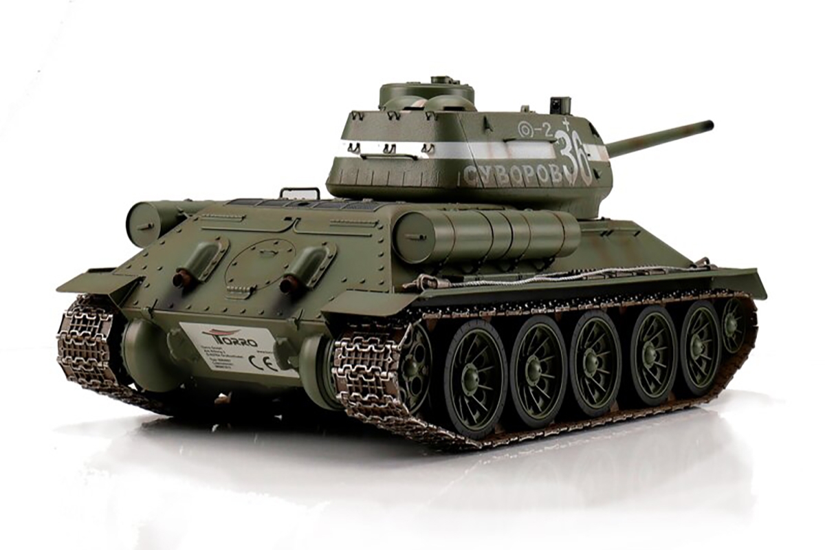 T34/85 byl použit až na jaře 1944. Byl vyzbrojen 85mm kanónem. Zničení tanku Tiger I na vzdálenost 1 km bylo bez obtíží možné. Celkem bylo postaveno kolem 20 000 kusů a Rusové označili T34/85 za „nejlepší tank 2. světové války“. Tento extrémně detailní R/C model z kovárny WSN-Trumpeter-Torro v měřítku 1:16 je k dispozici v zeleném letním maskovacím provedení. Model s jedinečným poměrem cena/výkon, který by neměl chybět v žádné kolekci.