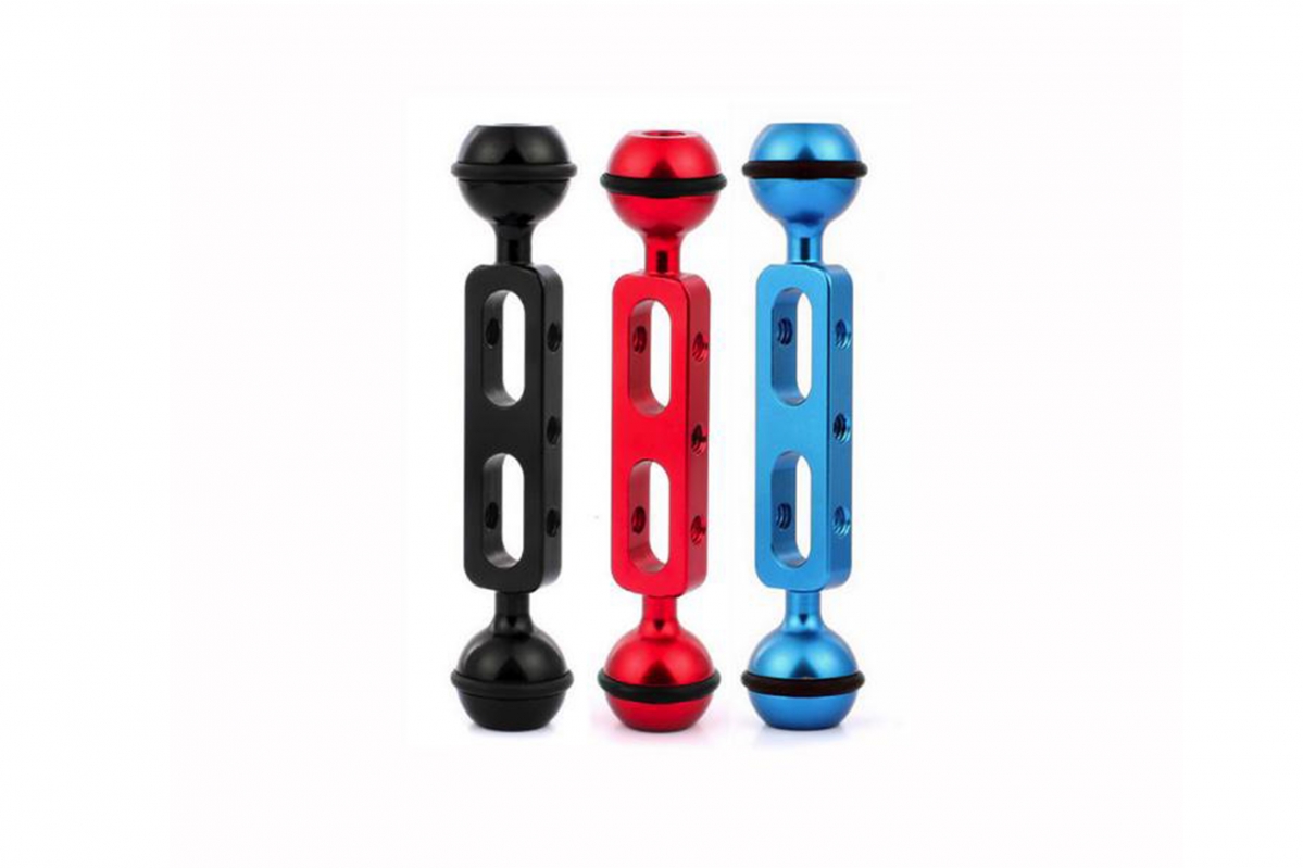 130mm CNC Upgraded Dual 1inch-Ball Extension Adapter je vysoce kvalitní prodlužovací adaptér, ideální pro potápěčskou fotografii. Váží 60,2 g a má délku 130 mm. Tento adaptér je vybaven 6 otvory pro šrouby 1/4" a 2 otvory pro šrouby 3/8", což zajišťuje širokou kompatibilitu s různým fotografickým a video příslušenstvím. Umožňuje flexibilní nastavení pro perfektní umístění kamer a dalších zařízení. Cena za jeden kus.