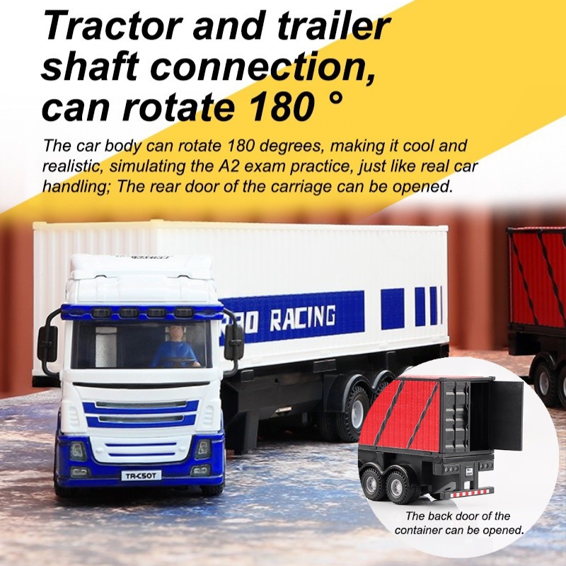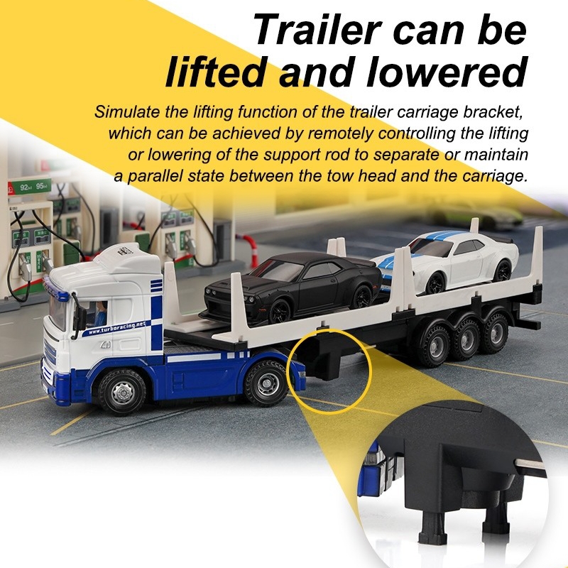RTR sada 1:76 RC nákladního auta s přívěsem a s 10CH pákovým vysílačem. Plně proporcionální řízení, oddělené vyměnitelné baterie s dobou jízdy až 40 minut. Kompletní osvětlení a zvukové efekty.
