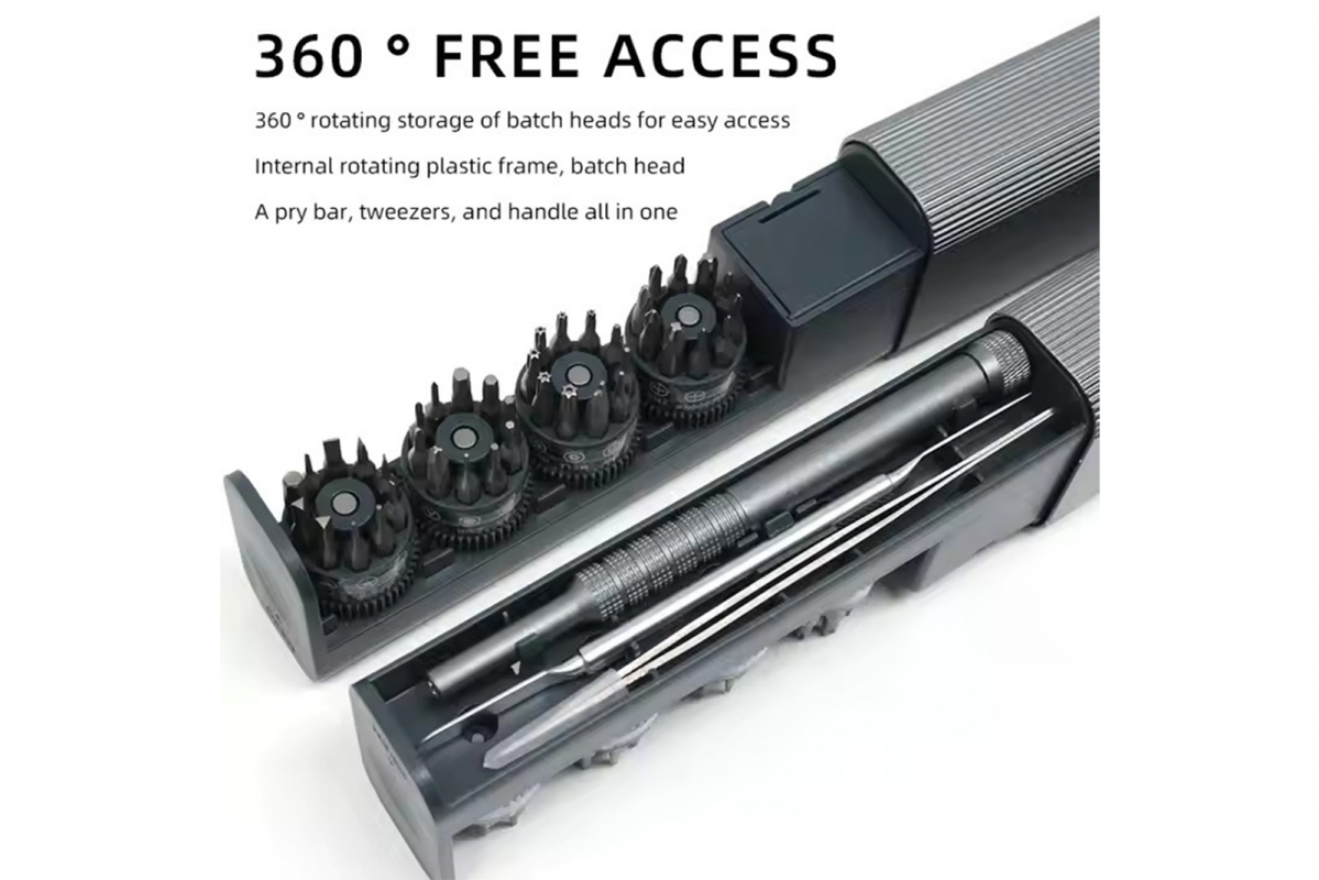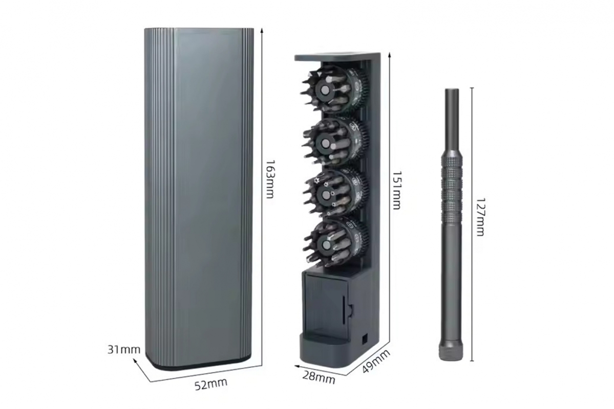 44v1 šroubováková sada s hliníkovým pouzdrem je praktickým nástrojem pro přesné opravy a údržbu. Obsahuje bity z odolné oceli CR-V a ergonomickou rukojeť z hliníkové slitiny. Celá sada váží 269 g a má kompaktní rozměry 16,3 × 5,2 × 3,1 cm, ideální pro domácí dílnu i cestování. Stylové pouzdro zajišťuje přehledné a bezpečné uložení nástrojů.