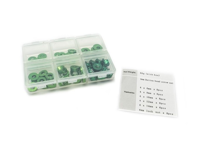 4mm sada podložek zelené(6mm/8mm/10mm/12mm/14mm) plus M4 Matky v plastovém boxu
