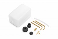 Lehká ale pevná nylonová nádrž 400 ml pro žhavící palivo s odolným víčkem, gumovou zátkou a opěrnou deskou. Předohýbané mosazné fitinky a sací závaží, silikonová hadička. Rozměry (bez hrdla a víčka): 121x70x57 mm, hmotnost: 51g.