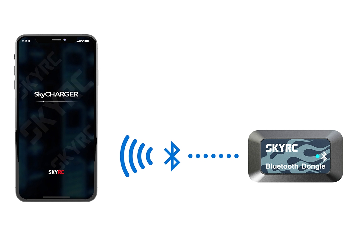SkyRC Bluetooth Dongle vám umožní navázat spojení mezi nabíječkou SkyRC a vaším chytrým telefonem pro ovládání a sledování nabíječky prostřednictvím aplikace SkyCharger.