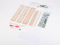 Stavebnice obsahuje: balsové předseknuté díly, balsové nosníky, vakuově lisované díly (kryt motoru), čirou fólii na "zasklení" kabiny, plastovou vrtuli s hřídelí a hlavicí, gumový svazek, vysoustružená balsová kola, ocelovou strunu na podvozek a další drobné díly, potahový papír, aršík mokrých obtisků, stavební plán.