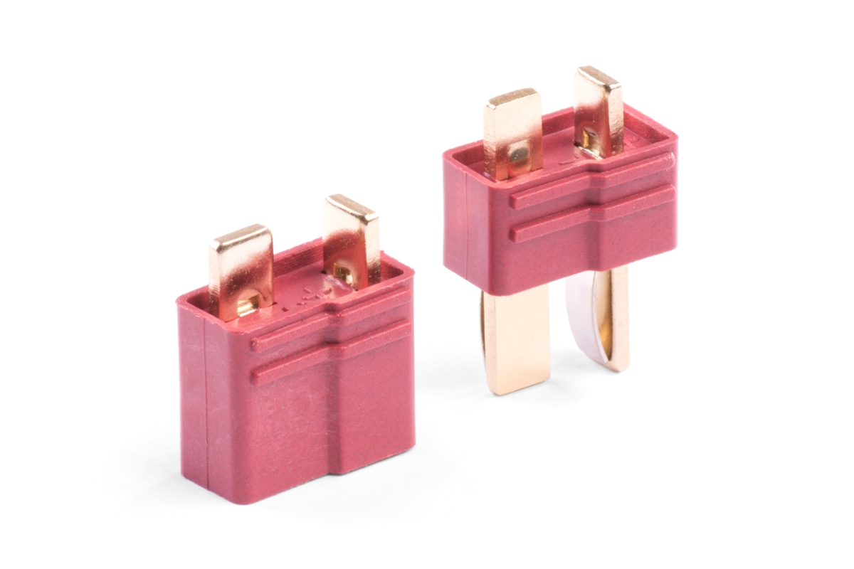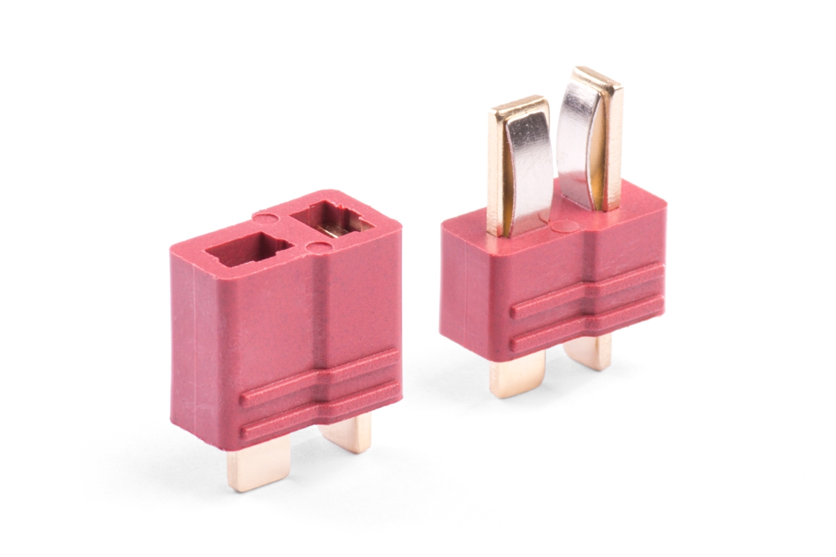Dvoukolíkový silový konektor s plochými zlacenými kontakty se zatížitelností max. 50 A (dlohodobě 25A) s drážkovaným tělem pro pevnější uchopení. Pro kabely o průřezu max. 3,3 mm2 (12AWG). Přechodový odpor 0,45 mOhm, max. 500 V. Balení 50 párů.