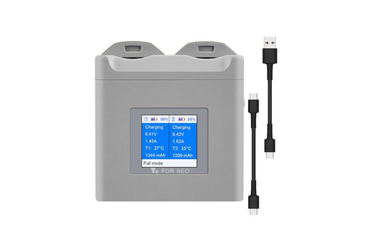 2v1 nabíjecí stanice s obrazovkou a režimem 60% pro DJI NEO je všestranné a efektivní řešení pro nabíjení, které zlepší váš zážitek z létání s dronem. Tento elegantní šedý nabíjecí hub vážící pouze 95 g a o rozměrech 7,6 x 7,4 x 3,3 cm se vyznačuje kompaktním designem, který zajišťuje pohodlí a přenositelnost. Vyrobený z odolného materiálu ABS, poskytuje dlouhou životnost a kvalitu.