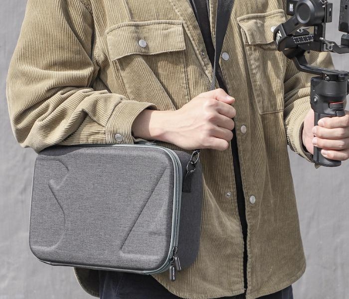Polyesterové pouzdro pro DJI RS 3 Mini s ramenním popruhem nabízí spolehlivou ochranu a pohodlné přenášení. Rozměry: 310 × 226 × 108 mm, hmotnost 1653 g. Vnitřní prostor je přizpůsoben pro bezpečné uložení stabilizátoru a příslušenství. Odolný materiál chrání proti nárazům a povětrnostním vlivům – ideální pro cestování i profesionální použití.