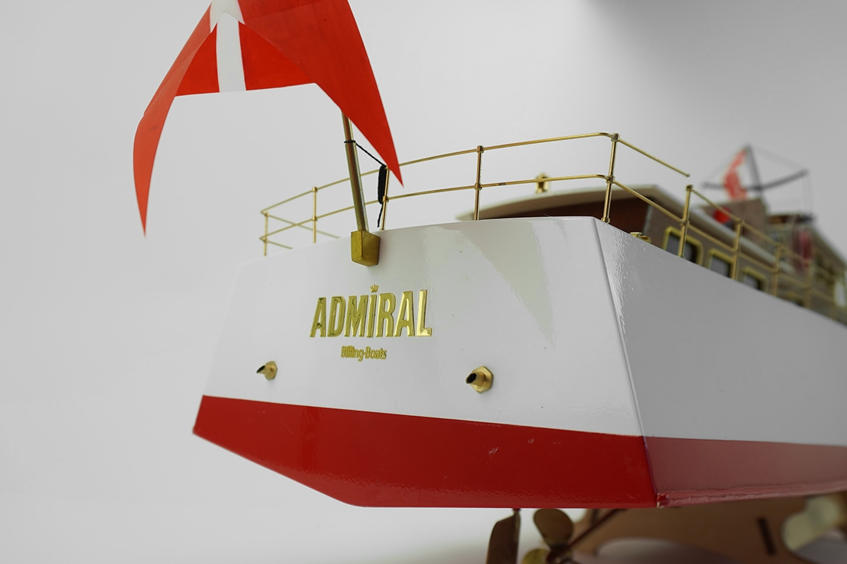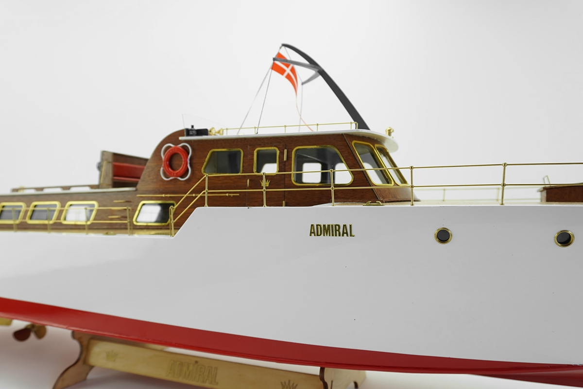 Admiral má trup klasické dřevěné konstrukce s laserem vyřezávanými žebry, plaňkovou obšívkou a dřevěnou palubou krytou abachi plaňkami. Hlavní části nástavby jsou z laserem vyřezávaných mahagonových dílů. Stavebnice obsahuje všechny plastové a dřevěné díly potřebné pro dokončení modelu, maketové příslušenství, lodní hřídel s pouzdrem a lodním šroubem.