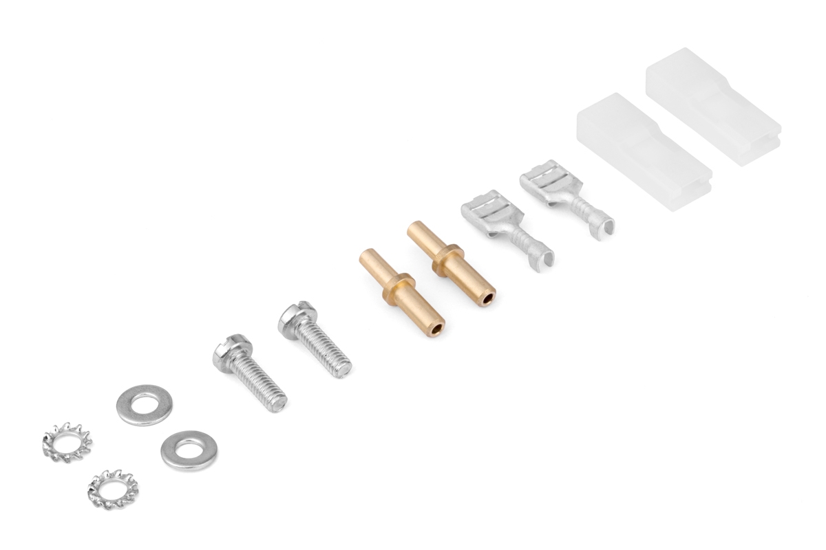 Včetně: kovové upevnění pomocí šroubů a příslušenství s elektrickými zástrčkami a dvěma mosaznými redukčními přípojkami.