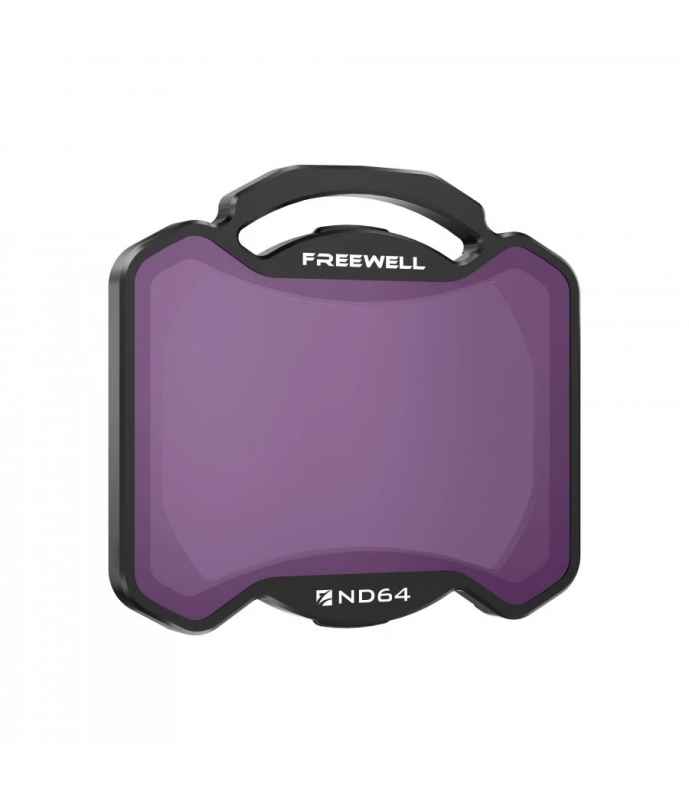 Freewell ND64 filtr pro kameru dronu DJI Avata 2. Technologie GimbalSafe. Povrchové úpravy. Ochranné pouzdro. ND64 filtr pomáhá snížit rychlost závěrky o 6 EV.