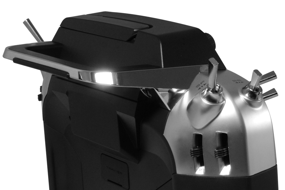 S přijímačem R7208SB obsaženým v soupravě máte k dispozici 8 kanálů PWM pro klasická serva (resp. až 26 kanálů při použití režimu 2 nebo 3 přijímačů) nebo plných 26 kanálů prostřednictvím sběrnic S.BUS a S.BUS2; stejně jako telemetrické údaje o napájecím napětí přijímače, napětí dalšího externího (např. pohonného) akumulátoru a síle signálu zachycovaného přijímačem. Další telemetrická data můžete získávat z dodatečných telemetrických senzorů připojených do sběrnice S.BUS2.