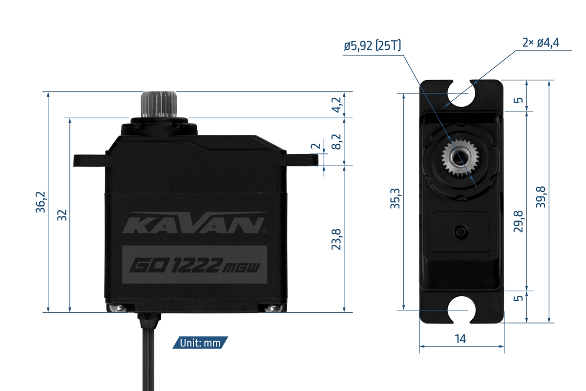 Silné a rychlé vodotěsné programovatelné digitální mikroservo s titanovými převody s výstupní hřídelí uloženou na dvou kuličkových ložiscích pro použití v terénních autech 1/16, robotech, lodích, menších modelech letadel vč. hydroplánů. Pro dokonalou ochranu proti vlivům okolního prostředí je servo uloženo ve vodotěsné/prachotěsné (dle standardu IP67) plastové krabičce.