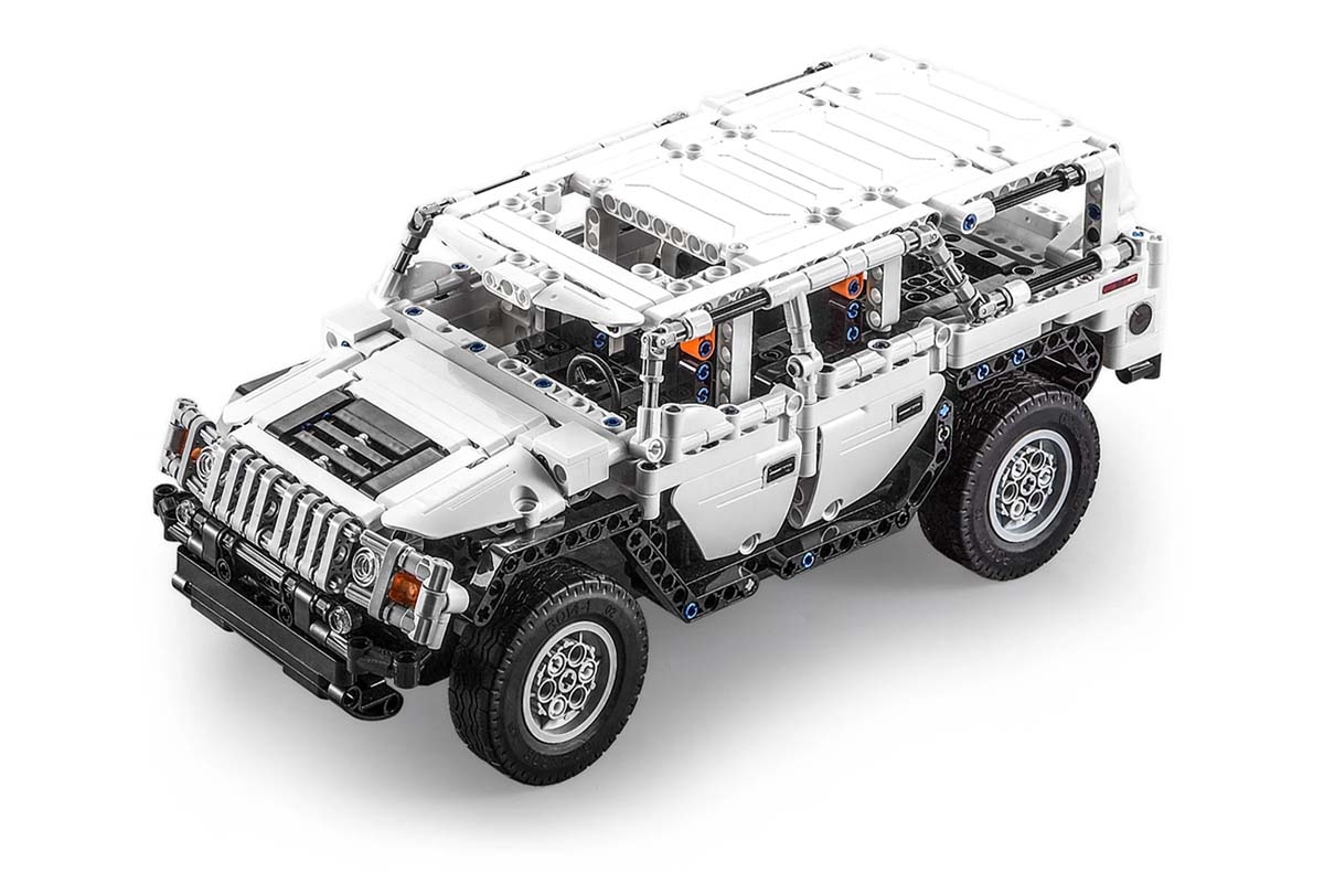 Stavebnice modelu terénního auta na dálkové ovládání, kompatibilní se stavebnicí Lego Technic. Pomocí dálkového ovladače a aplikace ve vašem chytrém zařízení můžete jet dopředu a dozadu, zatáčet doleva a doprava, ovládat přední a zadní světla. Max. rychlost 5,5km/h, dosah vysílače cca 25m. Součástí balení je originální akumulátor a nabíječ.