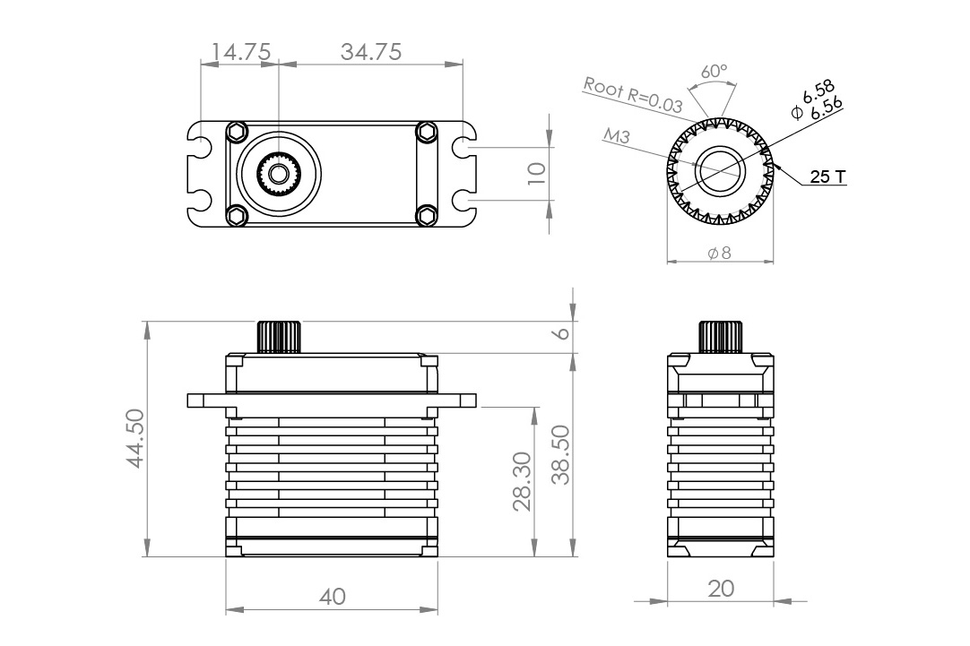 Combo set standardních serv pro vrtulníky velikosti 700-800 obsahující 3x HBL850 standardní střídavá serva pro cykliku a 1x standardní střídavé servo HBL880 (úzkopásmové 760µs) pro ocasní rotor. Kompatibilní s většinou 760µs gyroskopů a flybarless jednotek.