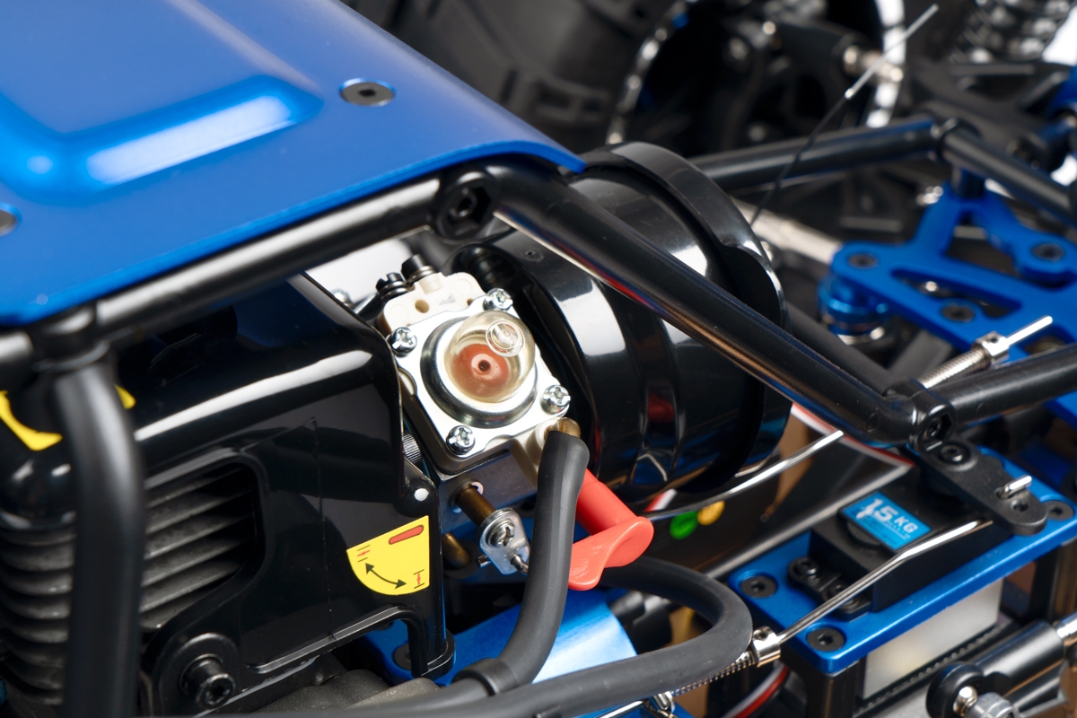 Provedení podvozku je velice podobné modelům menších měřítek, jen konstrukce a použité materiály jsou podřízeny tomu, aby skoro 17 kg model odolal i v těch nejnáročnějších podmínkách. Motor o obsahu 32ccm pohání přes odstředivou spojku pomocí rozvodovky a ocelového stálého převodu všechna čtyři kola, což je v této kategorii zcela ojedinělé.