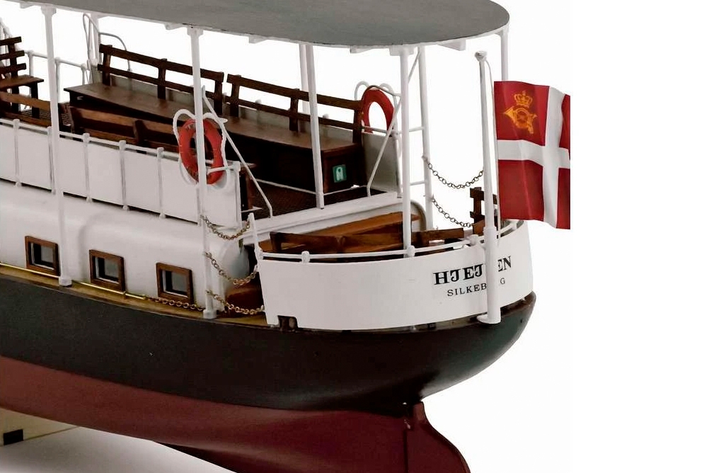 První plavba kolesového parníku Hjejlen z dánského Himmelbjergetu do Silkeborgu dne 24. června 1861 byla vpravdě slavnostní. Na palubě totiž nechybělo Jeho Veličenstvo Frederik VII., král dánský. Loděnice Baumgarten & Burmeister si na ní dala opravdu záležet - Hjejlen totiž přepravuje cestující dodnes a pohání ji stále původní parní stroj! Zatímco pohon zůstával, vnějšek lodi prošel několika proměnami - původně nesla vysoký stěžeň, který ale musel být později odstraněn, aby Hjejlen mohla proplouvat pod nově postaveným železničním mostem na trati do Silkeborgu. Ze stejného důvodu byl nainstalován sklopný komín; později byla přestavěna i kormidelna a místo plátěné střechy se objevila pevná. Stavebnice tak zachycuje loď v podobě, jakou můžete vidět dnes - takovou Hjejlen, na které se můžete svézt i vy.
