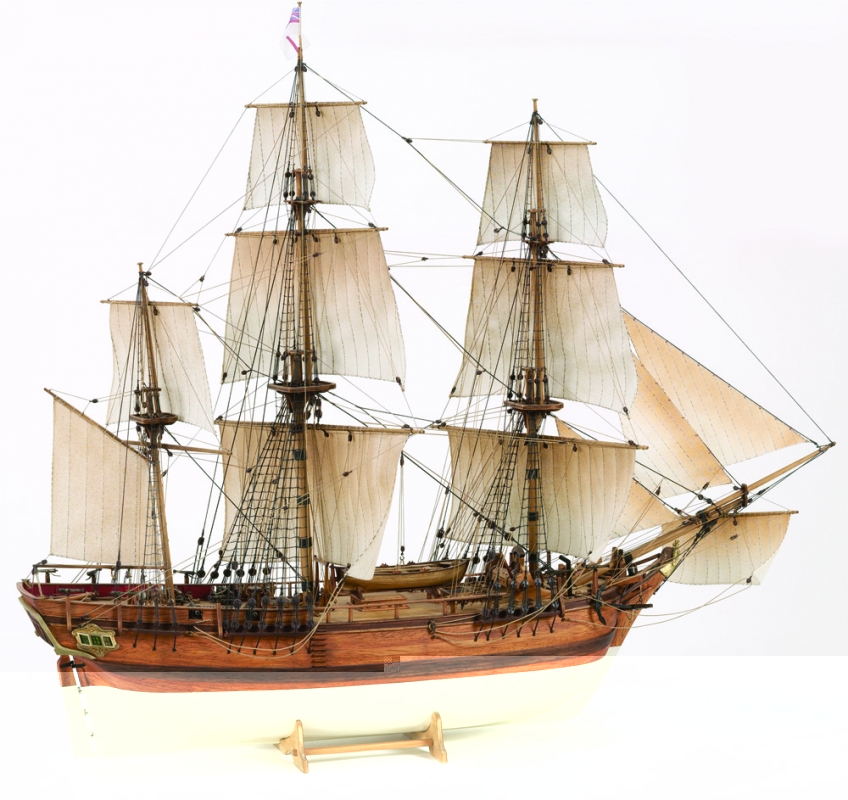 Bounty byla původně loď pro přepravu uhlí plavící se podél anglického pobřeží. Později byla zakoupena admiralitou a v roce 1787 vyslána na výpravu do Tichomoří - měla přivézt sazenice chlebovníku z Tahiti pro zajištění výživy osadníků v Západní Indii. V dubnu 1789 na zpáteční cestě došlo ke vzpouře, v důsledku tvrdého a necitlivého velení kapitána Bligha a touhy posádky po návratu do tropického ráje. Vzbouřenci vedení prvním důstojníkem Fletcherem Christianem vysadili kapitána a hrstku věrných mužů do malého člunu a vrátili se s Bounty zpět na Tahiti. William Bligh to možná neuměl s lidmi, ale námořník byl skvělý - 3618 námořních mil (6701 km) během 41 dnů na portugalský Timor ve člunu bez zásob, bez mapy, jen se sextantem a kapesními hodinkami, je dodnes jedním z největších námořních výkonů všech dob. Po pobytu na Tahiti část vzbouřenců uprchla před anglickou trestnou výpravou na lodi HMS Pandora a unikla na ostrov Pitcairn, kde Bounty spálila na břehu zátoky Bounty Bay. Po dalších 25 let nebyli objeveni, ale nakonec i je zasáhlo "rameno spravedlnosti" a stanuli před soudem v Anglii. Jejich potomci ale na Pitcairnu žijí dodnes. Bounty je určena pro pokročilé lodní stavitele; je konstruována jako neplovoucí stolní maketa.