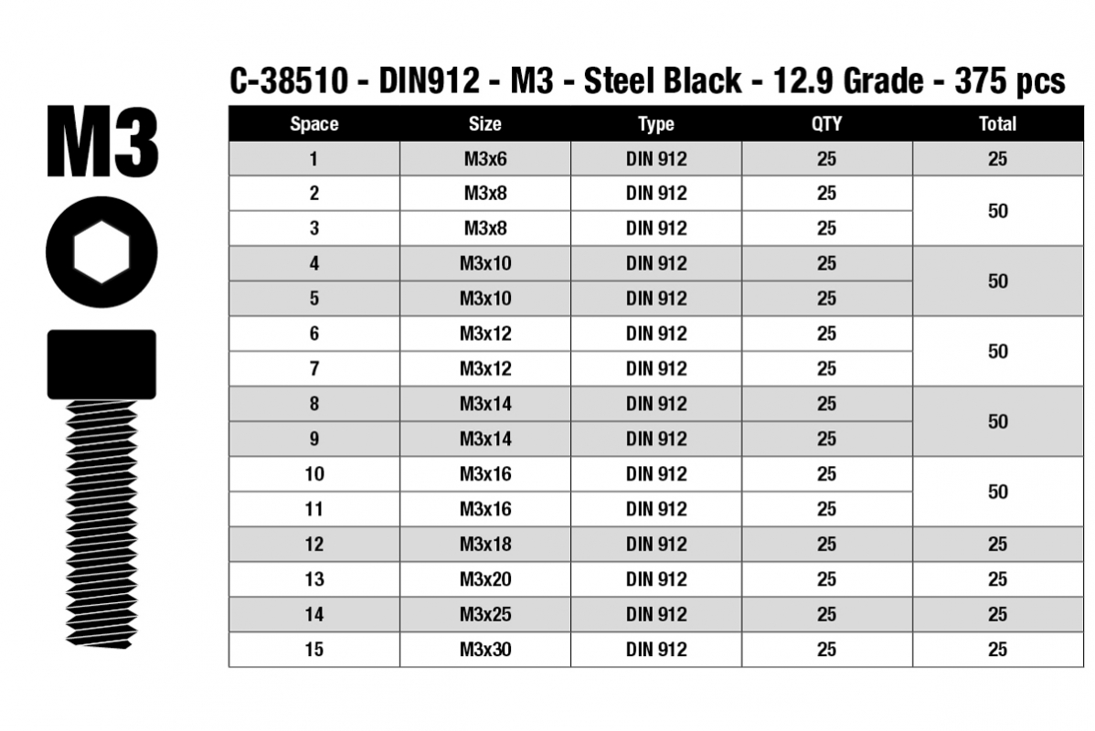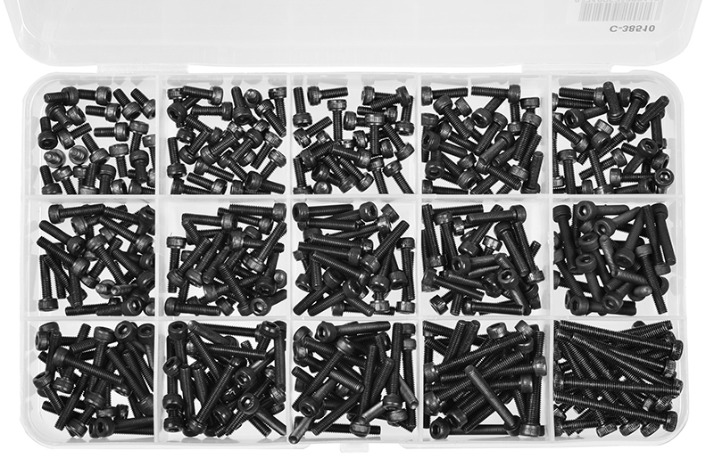 Imbus šrouby s válcovou hlavou - sada/box - M3 - ocelové černé, 375 ks.