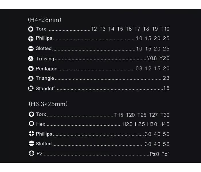 Torx (T2–T10): T2, T3, T4, T5, T6, T7, T8, T9, T10