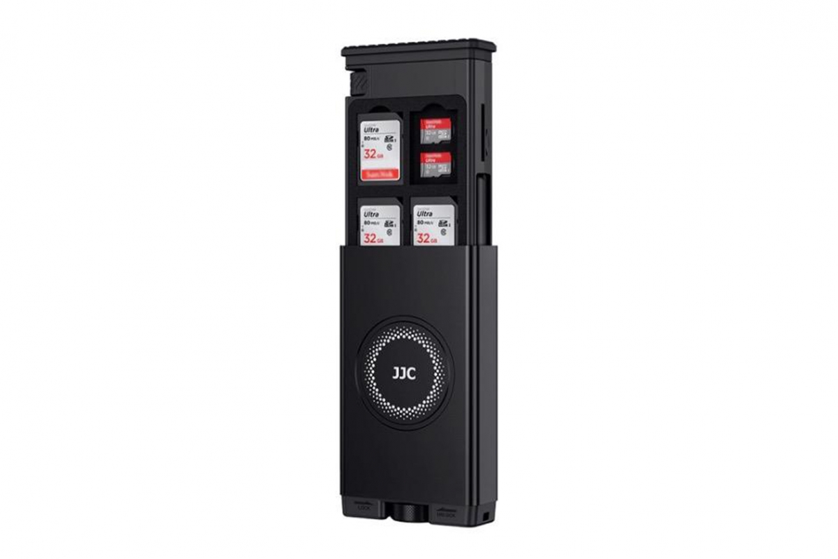 JJC Multifunkční úložný box na karty z hliníkové slitiny s čtečkou a adaptéry