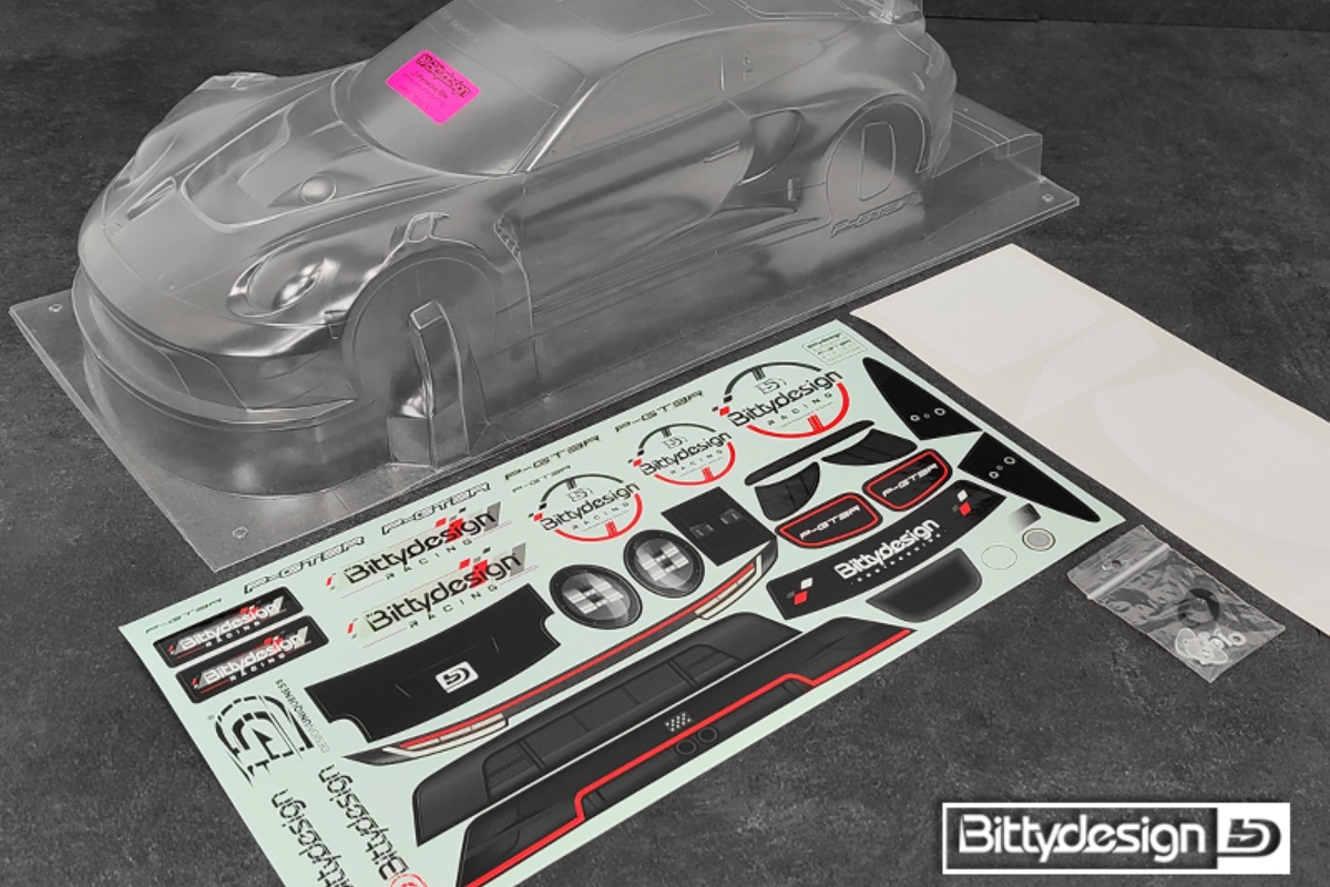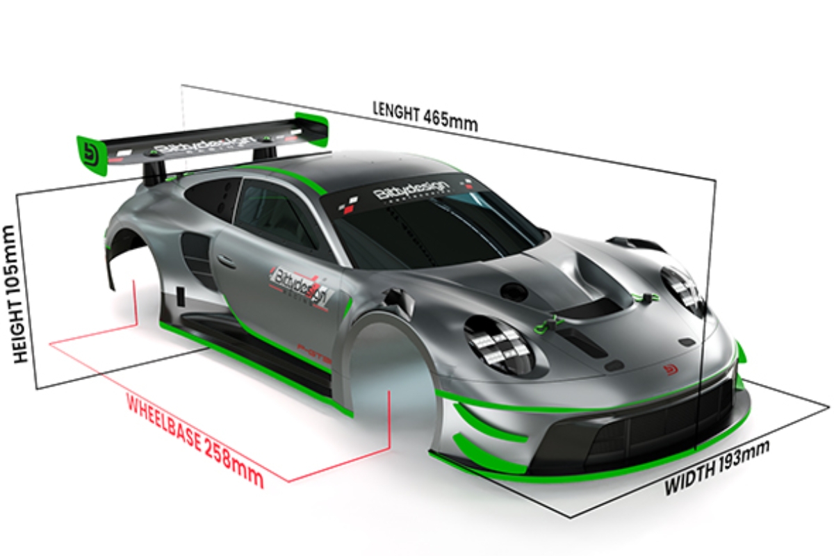 Čirá karoserie pro modely 1/10 GT je pokryta ochranou folií, vyrobena z velmi kvalitního polykarbonátu, balení obsahuje maskovací nálepky včetně samolepek.