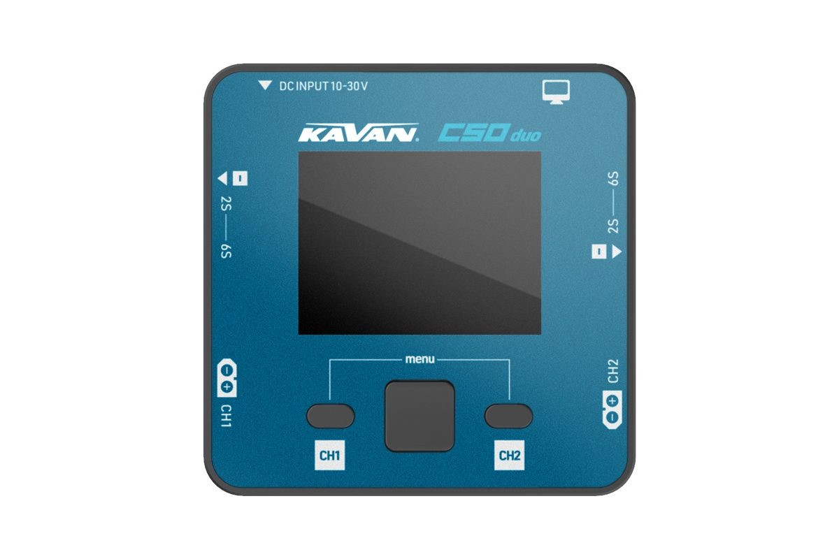 Miniaturní dvoukanálový nabíječ KAVAN C50 Duo 2x250W je inteligentní nabíječ s napájením z autobaterie/stabilizovaného síťového zdroje a velmi jednoduchou a přehlednou obsluhou. C50 Duo umožňuje nabíjet běžné typy článků (NiCd, NiMH, LiPo, LiHV, ULiHV, Li-ion, LiFe, Pb), navíc je vybaven vestavěnými šestikanálovými balancery, které zajišťují bezpečné nabíjení lithiových akumulátorů. Nabíječ je vybaven barevným LCD displejem a programovacími tlačítky, které vám poskytnou možnost komfortního a velice přehledného nastavování parametrů, řízení a sledování průběhu nabíjení.