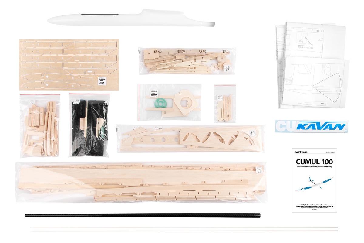 Stavebnice vysokovýkonného termického větroně klasické velmi lehké celobalsové konstrukce v rozsypu, který můžete také snadno upravit pro pohon střídavým elektromotorem třídy KAVAN C2836/AXI 2217. CUMUL 100 je ideálním projektem pro modeláře, který si chce postavit opravdu výkonný model pro rekreační i soutěžní létání. Díky promyšlené konstrukci s CNC vyřezávanými díly opatřenými výstupky a zářezy, které do sebe zapadají jako díly puzzle skládačky, jde stavba velmi rychle a snadno. S Cumulem 100 se neztratíte v soutěžích kategorie F5J nebo v různých „enduro“ třídách. Stavebnice obsahuje díly trupu pro čistý větroň i elektrolet. Stavba jde hezky rychle a není jí příliš mnoho – CUMUL 100 je pořád relativně jednoduchý model, ale není určen pro začátečníky.