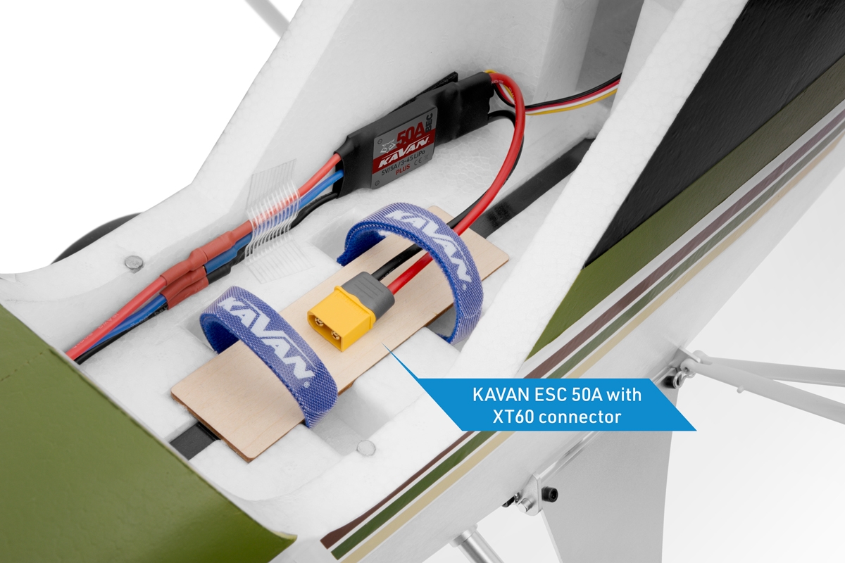 Trup modelu je zhotoven z vysoce odolného pěnového EPO (extrudovaného polyolefinu) s důkladnými vnitřními uhlíkovými výztuhami. V přídi je nainstalován střídavý elektromotor C3548-800 s třílistou vrtulí 10×6“ a regulátorem KAVAN R-50SB Plus s výkonným BEC stabilizátorem napájení potřebným pro napájení 6 serv na palubě. V přídi pod odnímatelným krytem najdete dostatek prostoru pro pohonný akumulátor.