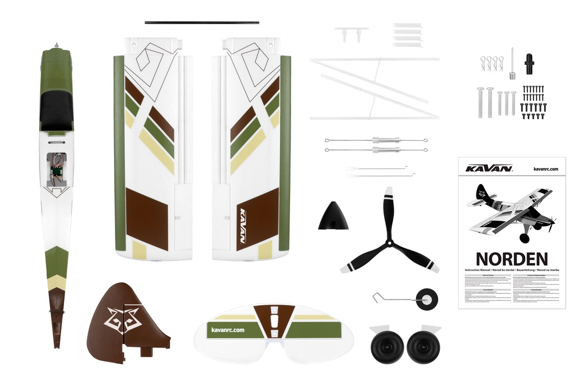 Pro ovládání modelu v nouzi vystačíte i se šestikanálovou počítačovou RC soupravou bez speciálních funkcí – v základním provedení jsou křidélka, klapky, směrovka zapojeny pomocí zapojovací desky nainstalované v prostoru kabiny vždy jen do jednoho kanálu. Deska také zajišťuje napájení LED světel. Ideální je samozřejmě použití aspoň sedmikanálové počítačové RC soupravy umožňující nezávislé ovládání křidélek a klapek dvěma servy, což dnes umí i cenově dostupný Radiolink AT9S nebo AT10II nebo Futaba T6K či T10J. V takovém případě je nutno serva křidélek a klapek připojit samostatně (můžete použít doplňkovou sadu kabelů, která se prodává zvlášť). V návodu samozřejmě nechybí důkladná tabulka s prověřeným výchozím nastavením výchylek kormidel, abyste Nordena snadno připravili k letu, i když to třeba bude váš první model s „plnou mechanizací“ křídla.