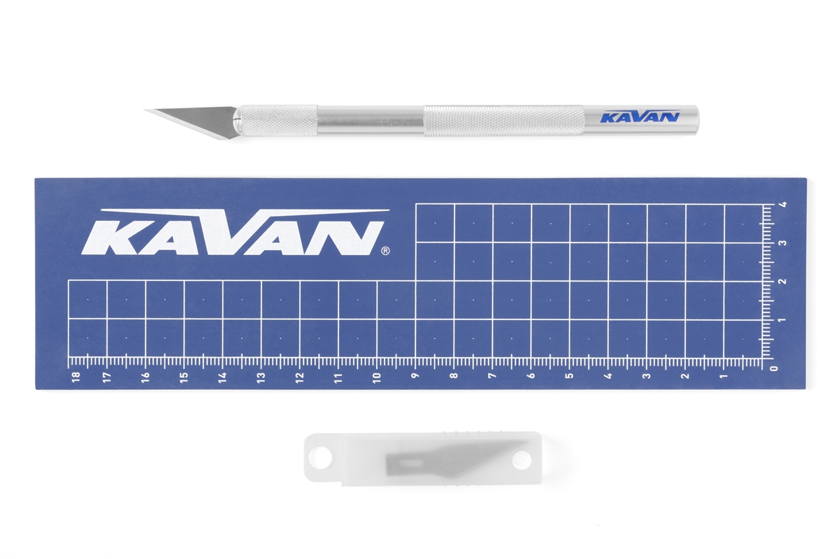 Kvalitní nůž KAVAN s řezací podložkou. Součástí balení je i sada náhradních čepelí.