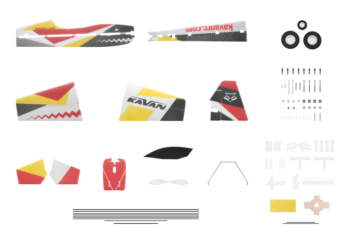 Stavebnice obsahuje: potištěné díly trupu, křídla, ocasních ploch a kryty podvozku vyříznuté z pěnového EPP, překližkové motorové lože, 3D tištěné plastové díly, uhlíkové výztuhy, páky, vidličky, táhla a další drobné příslušenství, uhlíkový podvozek s lehkými koly, podrobný obrázkový návod ke stavbě.