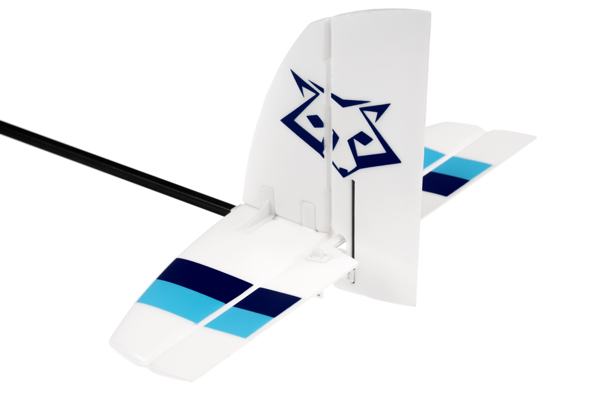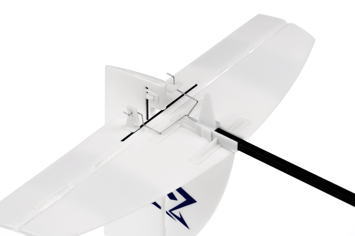Křídlo je z takřka nezničitelného pěnového EPO s uhlíkovým hlavním nosníkem a plastovými výztuhami koncových oblouků opatřenými vždy trojicí otvorů pro zasunutí uhlíkového kolíčku pro diskový start. Model tak mohou stejně snadno „vrhat“ praváci i leváci; posouváním polohy kolíčku vzhledem k těžišti můžete optimalizovat chování modelu při startu s ohledem na sílu větru a vašeho švihu. Křídlo se k trupu upevňuje dvěma polyamidovými šrouby, takže celý model je možno složit do celkem malého objemu pro cestu na výlet nebo dovolenou.