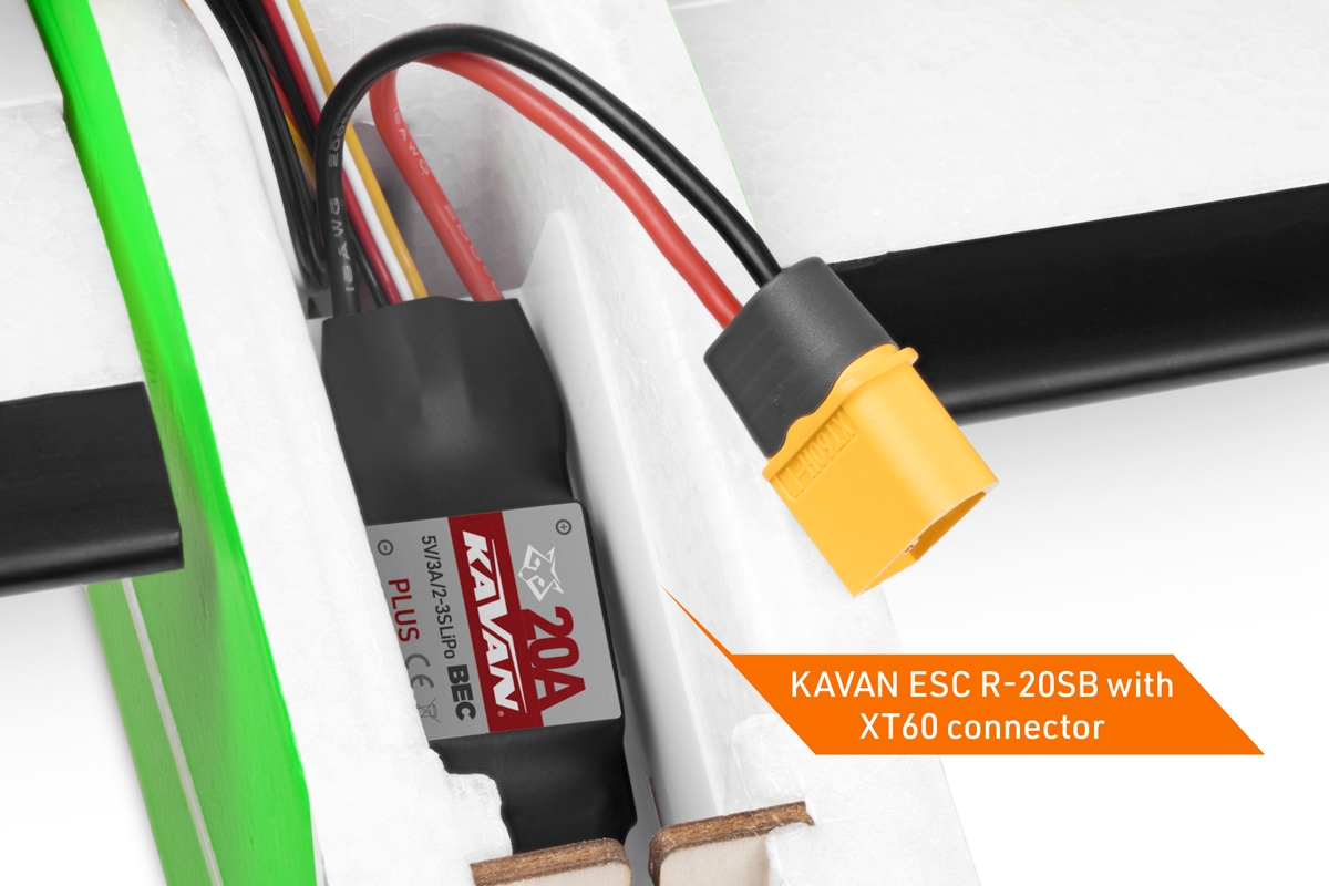 Trup modelu je zhotoven z vysoce odolného pěnového EPO (extrudovaného polyolefinu) s důkladnými vnitřními uhlíkovými výztuhami. V přídi je nainstalován střídavý elektromotor C2820-1450 se sklopnou vrtulí 7x6“ a regulátorem KAVAN R-20SB Plus. Kryt kabiny je odnímatelný, upevňuje se pomocí čepu vpředu a mechanického uzávěru vzadu. V přídi najdete dostatek prostoru pro pohonný akumulátor a přijímač. Mikroserva s kovovými převody pro ovládání polovin křídla, směrovky a výškovky jsou uložena v prostoru pod křídlem. Ocasní plochy jsou ovládány lanovody, poloviny křídla nastavitelnými táhly s kulovými čepy.
