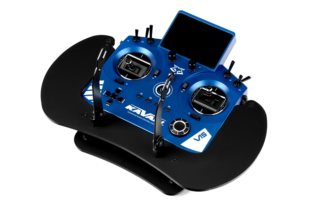 Robustní vysílačový pult pro KAVAN V15. Precizní ergonomické zpracování, snadná a rychlá montáž. Hmotnost 390 g, rozměry 160×305×90 mm. Matná černá barva. Výroba v Česku.