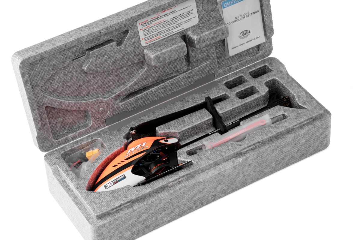 ARF set vrtulníku obsahuje: 100% sestavený a k letu připravený model M1 V1, pohonný akumulátor LiPo 7,4 V 350 mAh 50C, imbusový šroubovák, plochý klíč, nabíjecí kabel, pevnou krabici z pěnového EPP s odklopným víkem pro bezpečné přepravování a skladování modelu, návod k obsluze modelu a nastavování řídící jednotky.