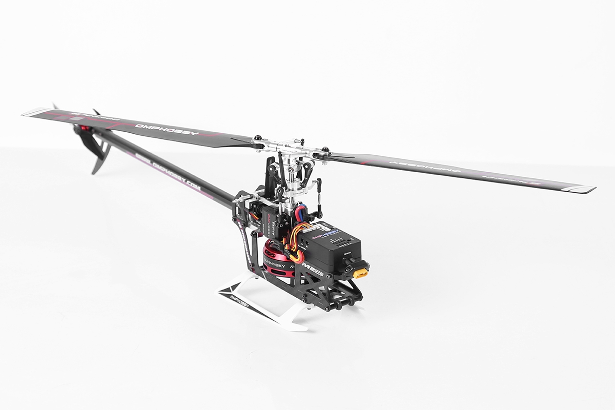 Podívejme se blíže na tenhle nejnovější skvost z konstrukčních kanceláří OMP Hobby. Základ konstrukce trupu tvoří duralové motorové lože a pouzdro hlavní hřídele s připojenými uhlíkovými bočnicemi a příčkami, plastovým lyžinovým podvozkem a ocasním nosníkem z profilované duralové trubky s uhlíkovým svislým stabilizátorem. V rámu je uložen nový výkonnější střídavý elektromotor Sunnysky® R40 s vyšším KV750 s rotačním pláštěm pohánějící přímo, bez obvyklých převodů, nosný rotor. Stejně tak vyrovnávací rotor pohání přímo miniaturní střídavý motor Sunnysky® R13-3. Díky tomu je celá mechanika maximálně zjednodušena, odpadají potíže s drhnoucími smykátky, očesanými převody nebo prokluzujícími náhony.