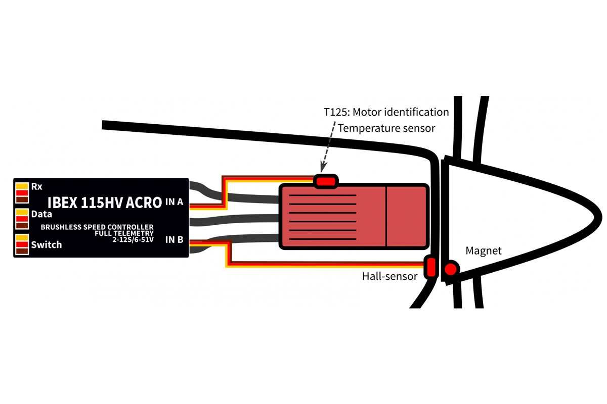 Pozicování vrtule pomocí Hall senzoru (prodává se zvlášť).