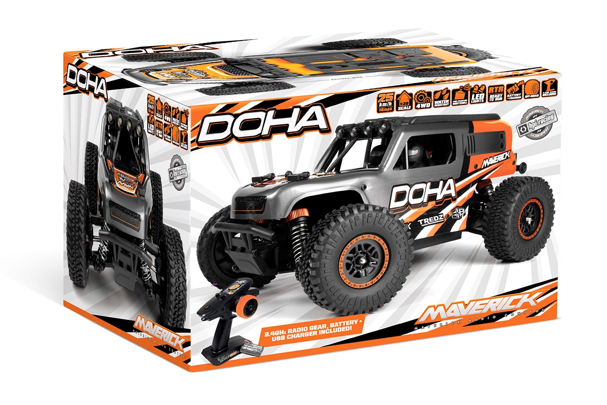 Součástí balení modelu DOHA je 600mAh li-ion akumulátor Maverick Element, praktický USB nabíječ, 2,4GHz rádiový systém MTX-201, voděodolný 2v1 přijímač/regulátor MSRS-201. Model DOHA je navíc vybaven střešními LED světly, která umožňují provoz za zhoršených světelných podmínek.
