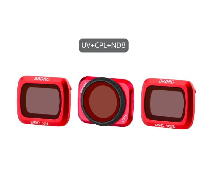 Sada filtrů pro Mavic Air 2 (UV + CPL + ND8) je navržena pro univerzální použití při různých světelných podmínkách. UV filtr chrání objektiv a redukuje opar, CPL filtr eliminuje odlesky a zvyšuje sytost barev, a ND8 filtr pomáhá dosáhnout plynulých záběrů za jasného dne. Kompaktní rozměry 2,2 × 1,8 × 0,5 cm a nízká hmotnost 1,9 g na kus zaručují snadnou instalaci bez ovlivnění letových vlastností.
