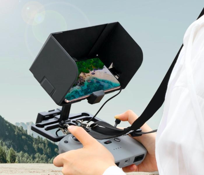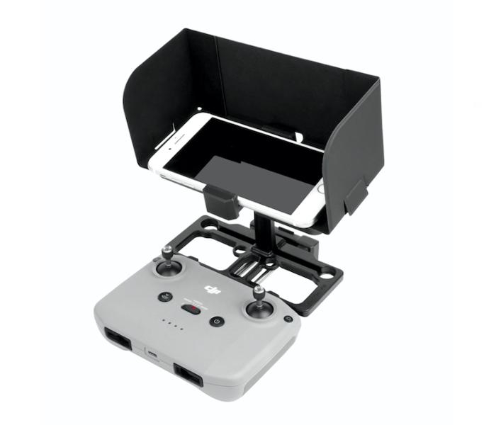 Držák na smartphone se sluneční clonou pro drony DJI Mavic Air 2, Mavic Air, Mavic Mini, Mavic 2, Mavic Pro a Spark je určen pro telefony o šířce 61–102 mm. Zajišťuje stabilní uchycení telefonu k ovladači a sluneční clona zlepšuje viditelnost displeje při jasném světle. Robustní konstrukce s hmotností 329 g poskytuje pevnost a komfort při ovládání dronu. Ideální doplněk pro lepší kontrolu při létání.