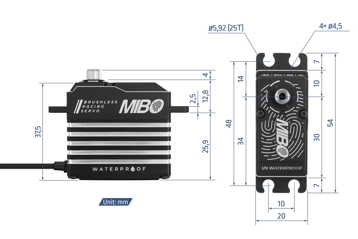 MIBO 1/8 Waterproof (0.085s/45kg/8.4V) Brushless Servo