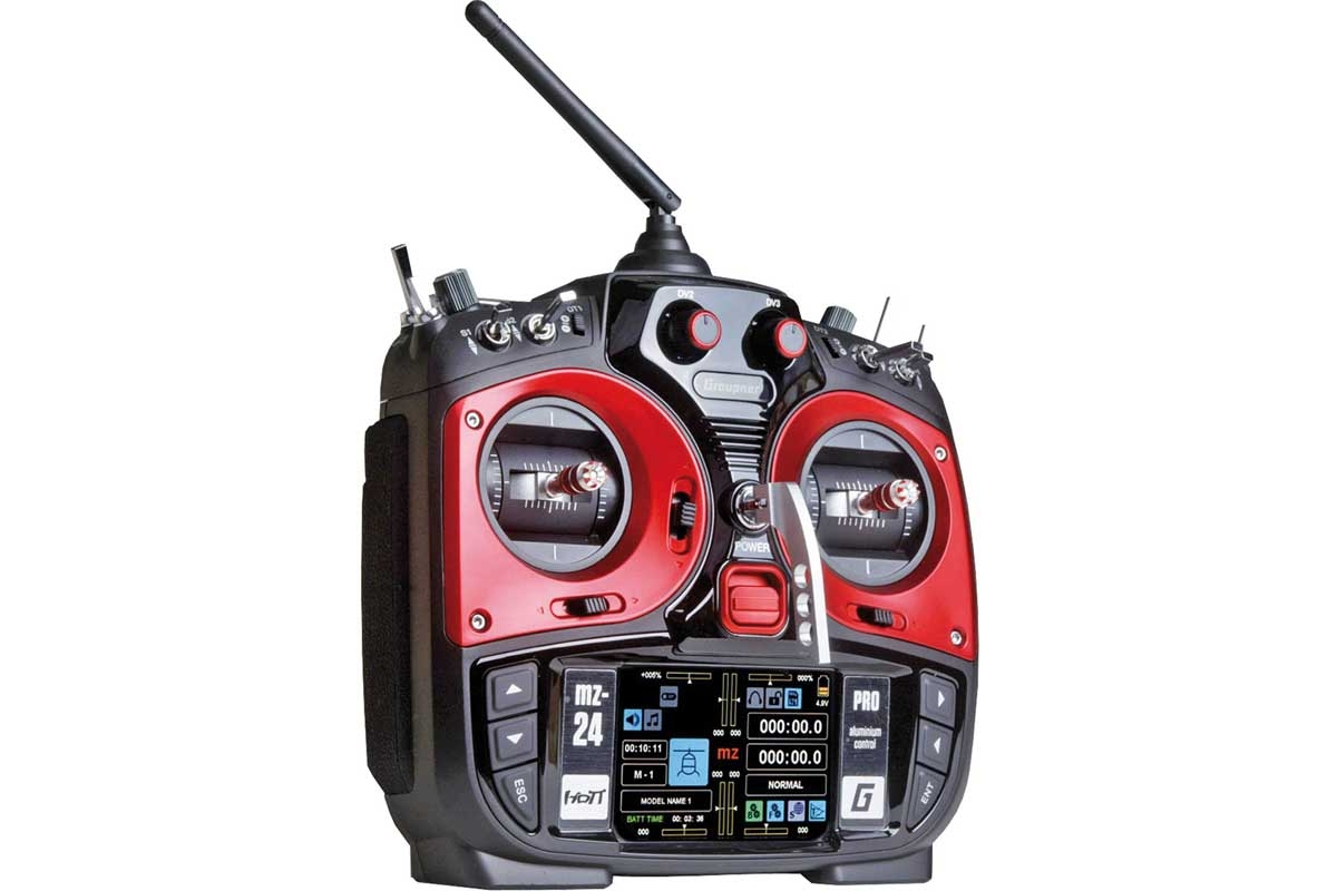 Nová 12-kanálová RC souprava se systémem přenosu 2,4 HGz HoTT vycházející z úspěšného modelu vysílače z roku 2015. Vysílač je vybaven plnohodnotnou telemetrií a barevným dotykovým displejem. Osvědčená 2,4 GHz technologie Graupner Hott představuje funkčnost, bezpečnost, dlouhý dolet a krátkou dobu odezvy. MZ-24 PRO je ideální dálkový vysílač pro téměř všechny modely - od multicopter přes vrtulníky, letadla s elektro nebo spalovacím motorem, až po 3D letadla a větroně. MZ-24 disponuje 12 kanály, volně nastavitelnými přepínači a tlačítky, 30 modelových pamětí, 6 fázích letu a 8 mixy umožňující váš model vždy plně a pohodlně ovládat.