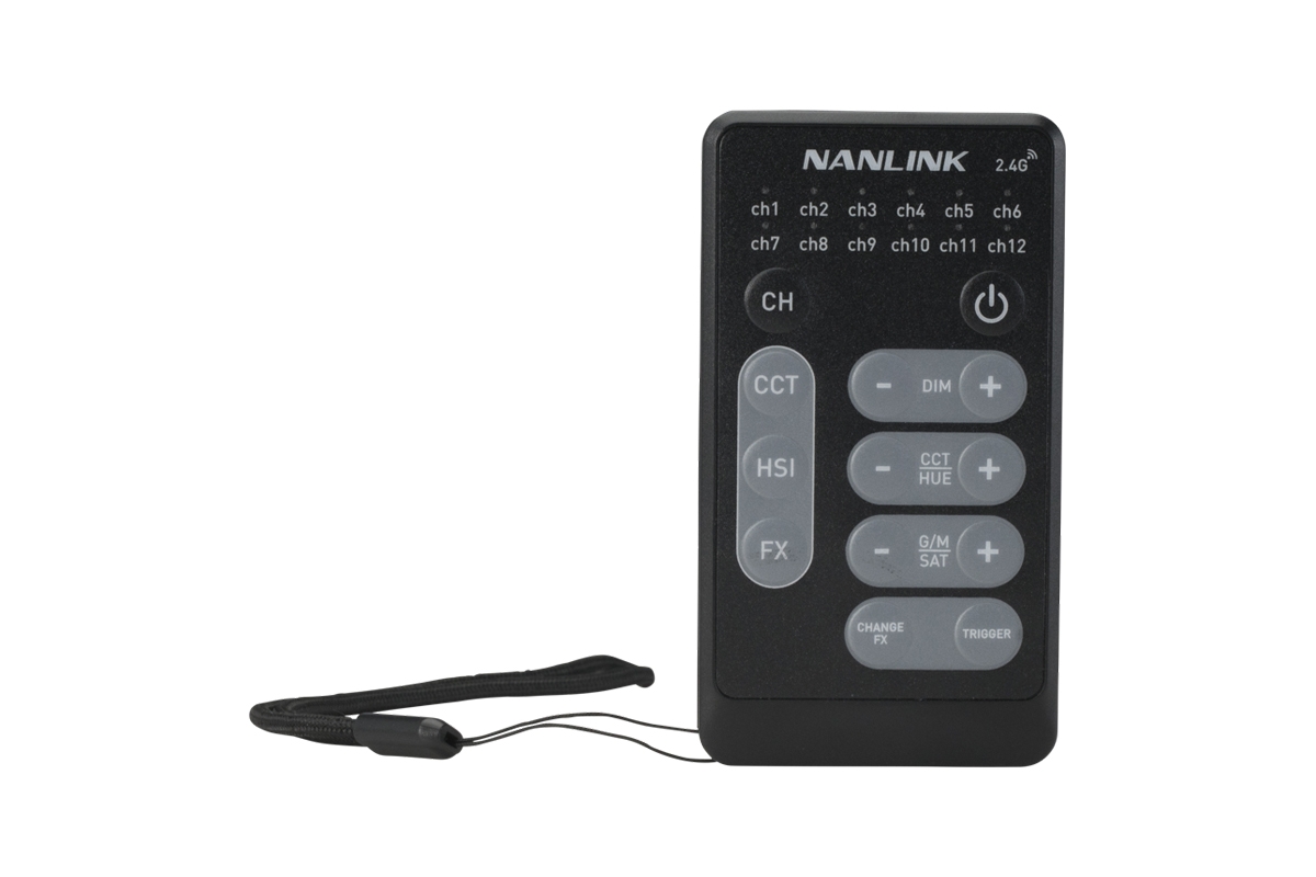 Multifunkční bezdrátový ovladač schopný upravit jas, teplotu barev, odstín a sytost světel Nanlite a Nanlux vybavených vestavěnými 2,4 GHz přijímači na vzdálenost až 10 m. U kompatibilních světel vám také WS-RC-C1 umožňuje přepínat mezi režimy tvrdého a měkkého světla.