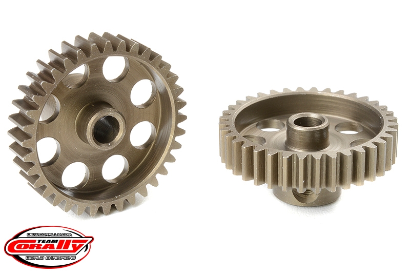 Krátké provedení, materiál tvrzená ocel, 36 zubů, modul ozubení 48DP. Pro hřídel motoru o průměru 3.17 mm (1/8 in). Pastorky TEAM CORALLY jsou vyráběny frézováním a následně tvrzeny, čímž je zajištěna vysoká přesnost ozubení. Všechny pastorky TEAM CORALLY jsou vyrobeny v EU.