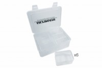 Pevný, odolný, průsvitný box o rozměrech 165x120x60 mm obsahuje 6 vnitřních boxů o rozměrech 75x50x35 mm se samostatným uzamykatelným víkem pro rychlé a snadné uložení dílů.