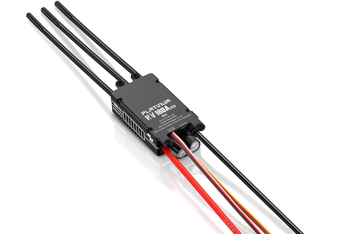 Nejvyšší řada regulátorů firmy Hobbywing pro letecké aplikace. Tato verze je vhodná pro vrtulníky řady 550-700 a velké modely letadel třídy .70-.120. Spínaný BEC 5-12V 10A. Trvalý proud 180A, špičkový 260A. Napájení 6-14S LiPo. Hmotnost 250,6g. Rozměry 100,6x45,5x26,1mm.